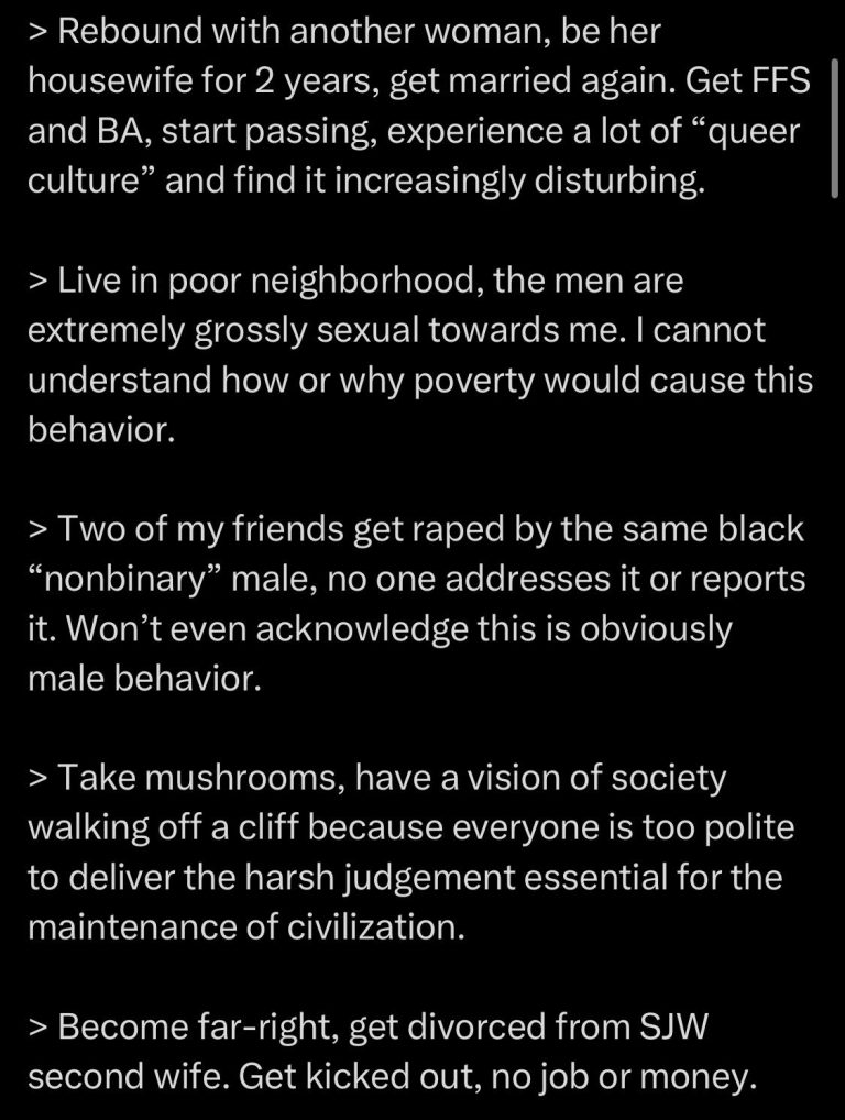Over time, I learned more bits and pieces about what had happened. I found out that a different Black transfemme felt that if she had spoken up for me, her housing would have been threatened because she lived with one of the people involved. I find out the doll from the last paragraph has not only posted a second, different story about what she claimed happened (fig 8), but later on that she had related to a different person’s tale of sexual violence by “a black ‘nonbinary’ male engaging in obviously male behavior”, stating how she’s “certainly not far right” but “the bit abt society’s unwillingness to visit judgement upon an NB/minority sex pest is uncomfortably relatable”. (fig 9 and fig 10)