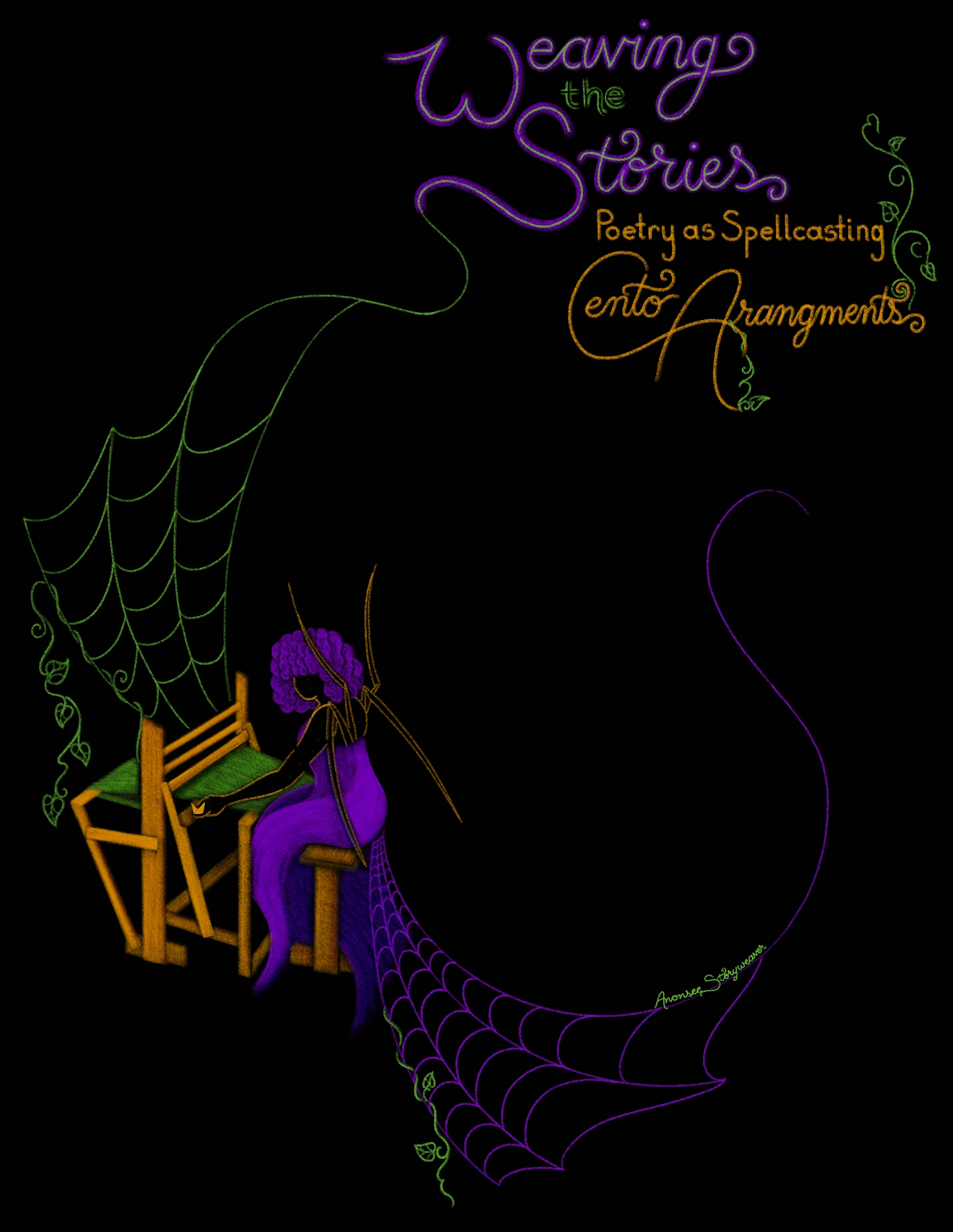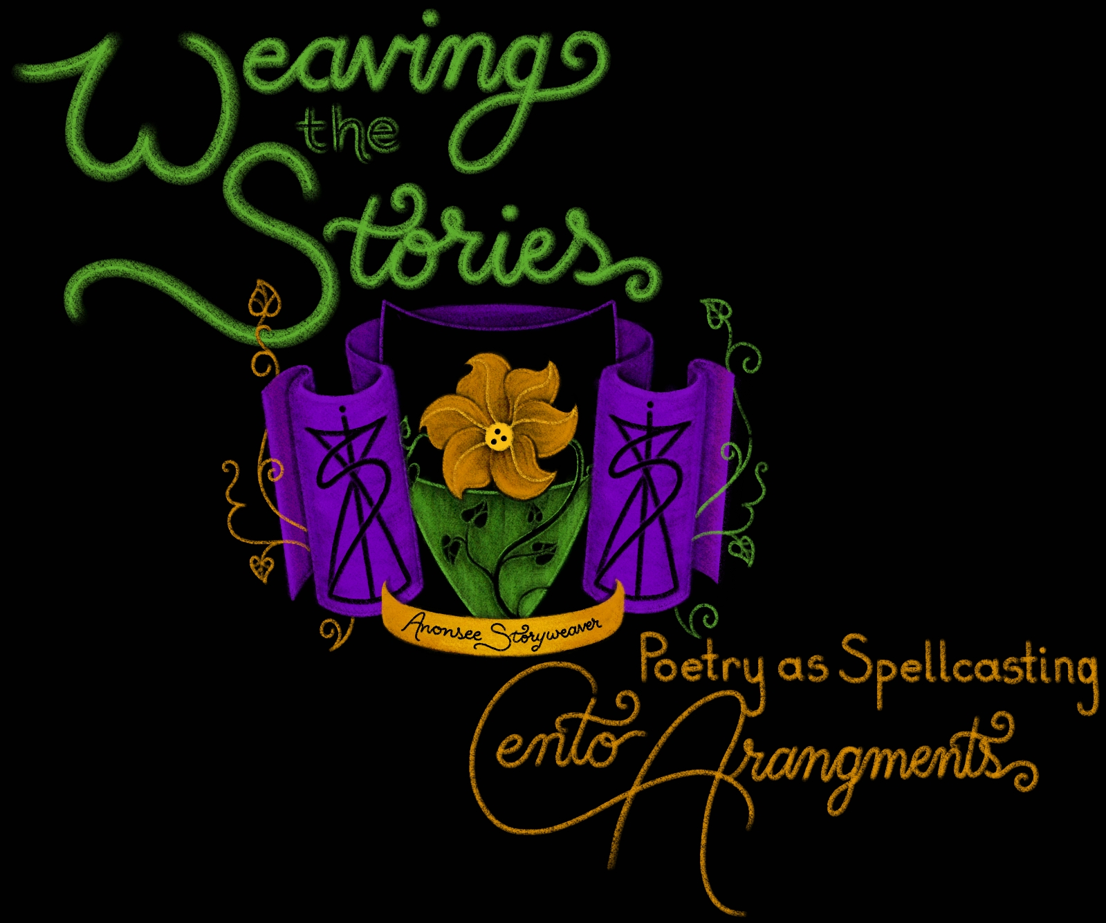I didn’t use every story from Poetry as Spellcasting because some felt as if they weren’t meant to be touched in this way, and most guided spells and practices felt as if they might break if I bent them for this. As such, I primarily work through the essays of Poetry as Spellcasting, and I do my best to honor them in the way I weave them into my own stories. If I wove your story, your writing, I hope this feels as art inspired by your art and story to you, rather than a destruction of your own work.